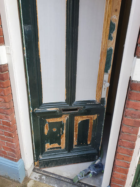 Het kan voorkomen dat het onderhoud te lang is uitgesteld, er is dan vaak geen andere optie dan het oude verfsysteem volledig te verwijderen. De daklijst hier is daar een goed voorbeeld van.