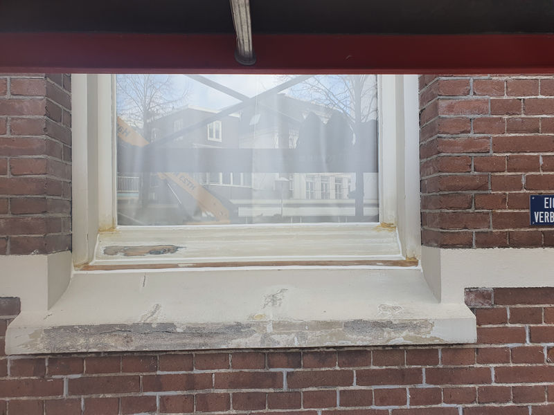 Het is misschien niet altijd even mooi, alles in één kleur. Maar in dit geval is alles in een lichte kleur. Dit heeft wel enorm veel voordelen i.v.m. weersinvloeden. Aangezien lichte kleuren beter tegen zon kunnen komen er minder snel problemen. Dat kun je hier goed terug zien. Ondanks achterstallig onderhoud is het schilderwerk in een redelijke staat.